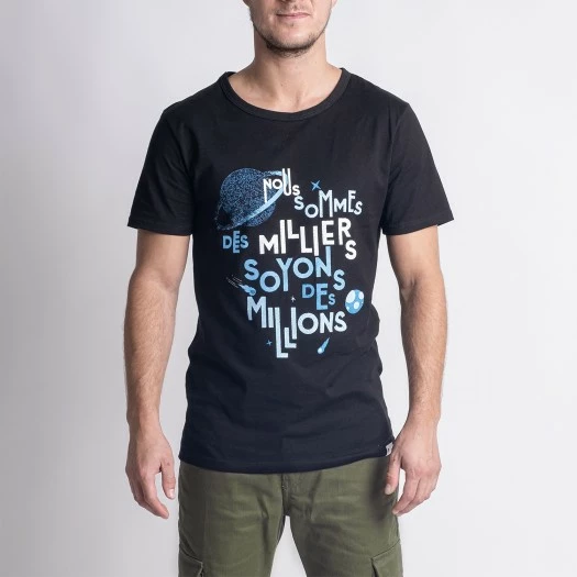 1083 T-SHIRT DROIT 324 TIME FOR THE PLANET Coton Bio Noir Homme